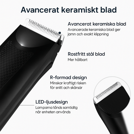 Visa alla detaljerKroppshårstrimmer med keramiska blad för hela kroppen Trimma kroppshår smidigt och säkert med en trimmer som kombinerar precision, komfort och smar...