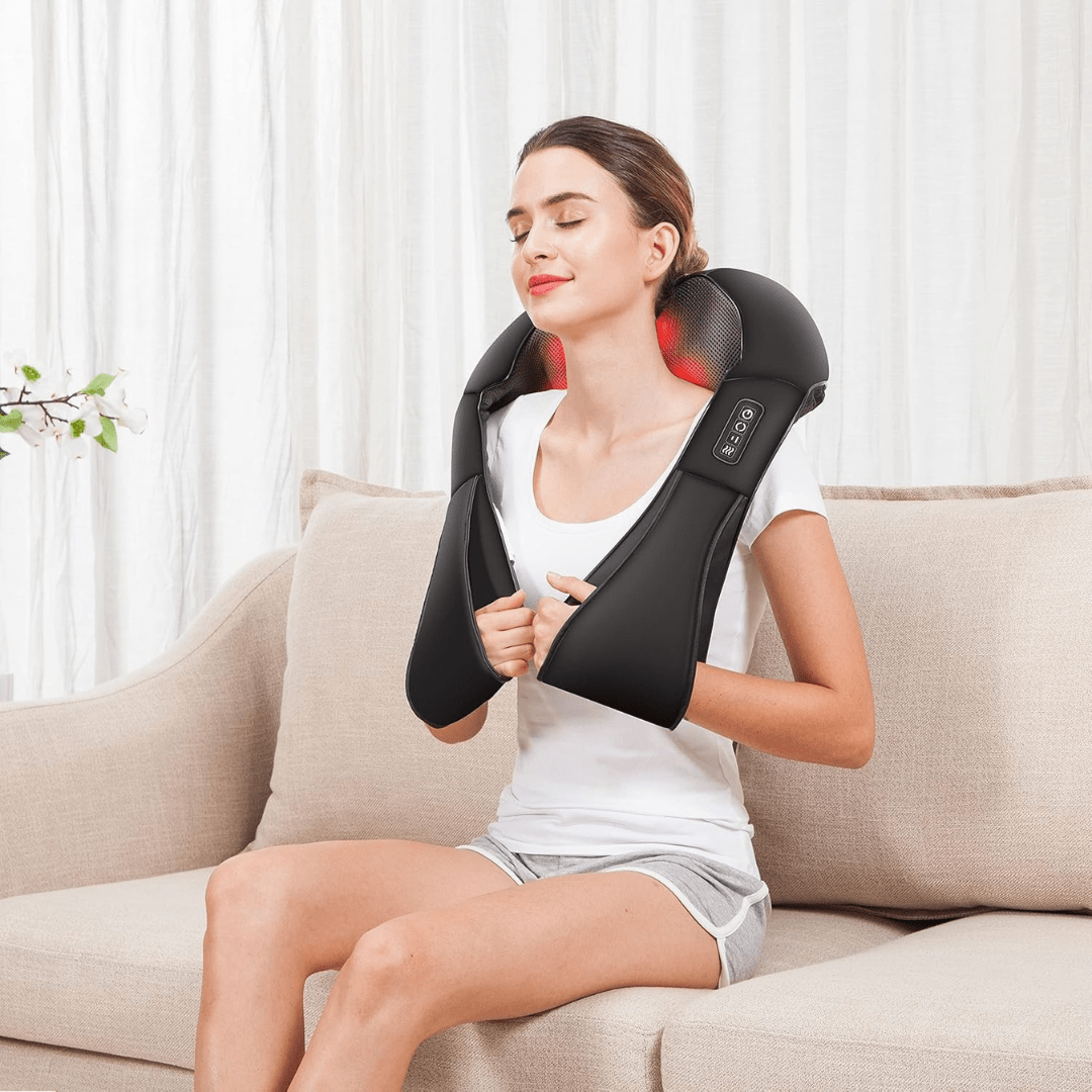 Visa alla detaljerShiatsu massager för nacke och rygg med värme lindrar spänningar efter en lång dag Stress och stelhet i nacke, axlar och rygg gör det svårt att sla...
