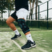 Knäskyddet är tillverkat i ventilerande och elastiskt material med en anatomisk silikonring som hjälper till att centrera knäskålen. Inbyggda metallfjädrar på båda sidor bidrar till ökad sidostabilitet. Justerbara kardborreband gör det enkelt att anpassa passformen även under aktivitet.