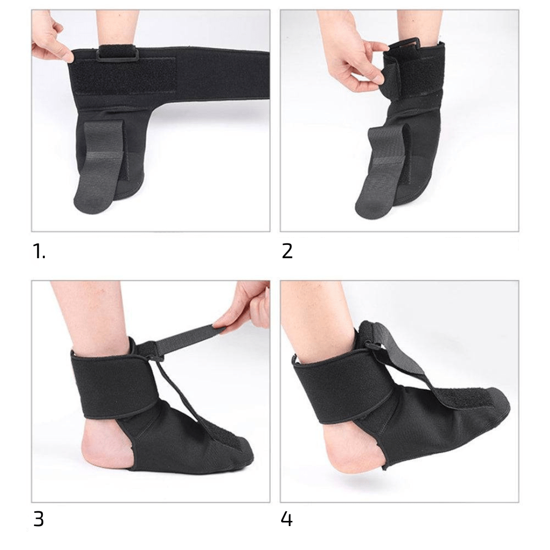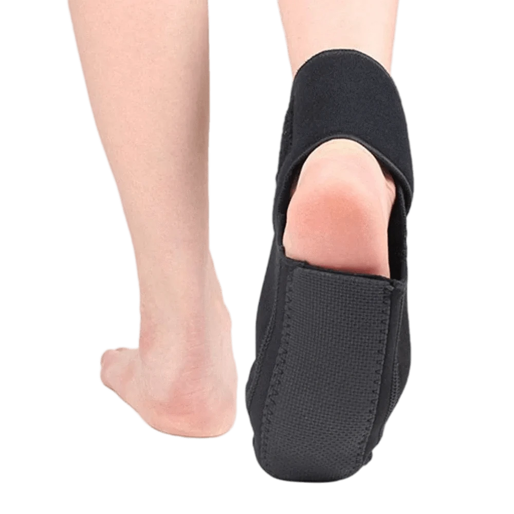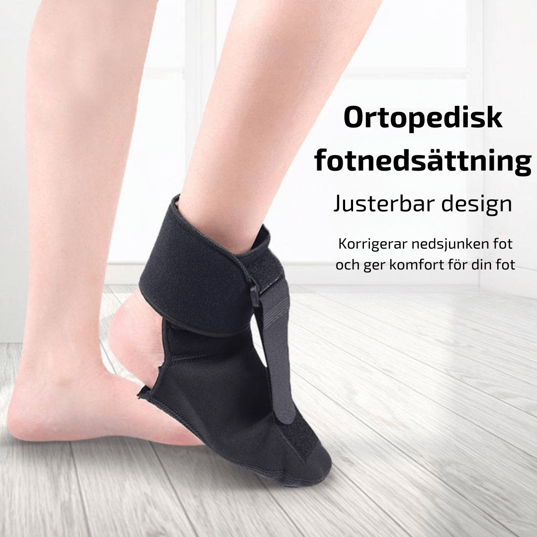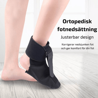 Det justerbara ankelstödet ger extra stabilitet och hjälper till att lyfta foten vid gång, vilket minskar risken för att foten släpar i marken. Passar både höger och vänster fot, fungerar med eller utan skor och är tillverkat i ett mjukt, hudvänligt material som lämpar sig för daglig användning.