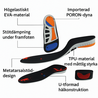 Ger stabilt stöd och minskar belastningen på fötterna vid gång och aktivitet.