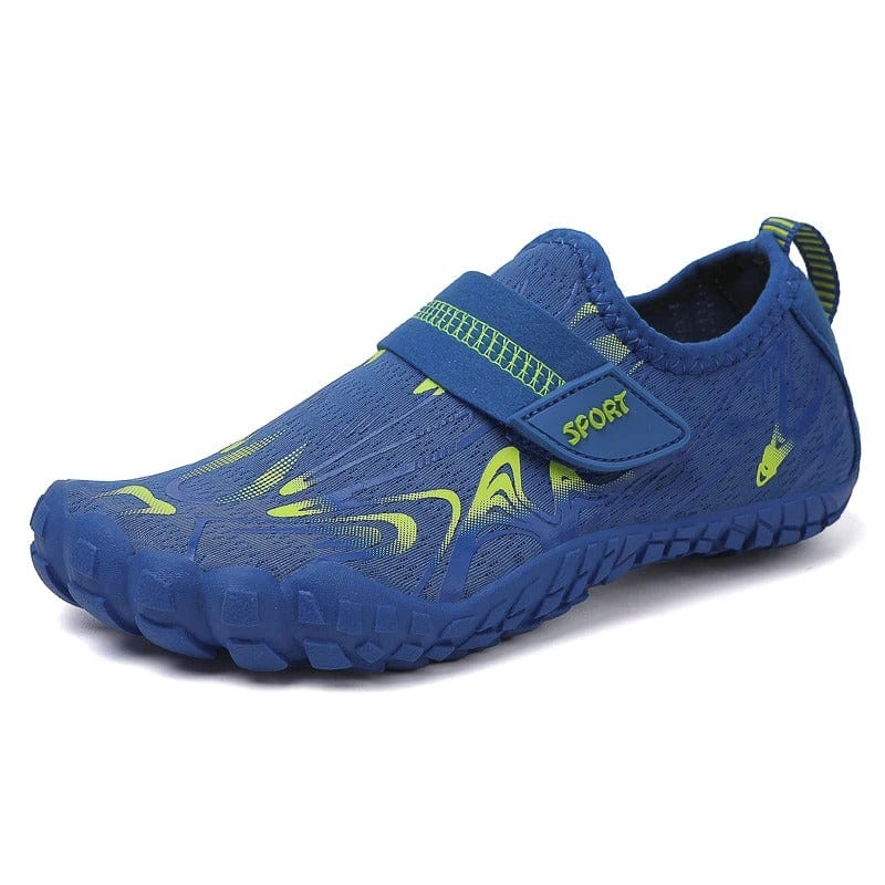 Lätta barfotaskor som torkar snabbt och ger barnet full rörelsefrihet vid lek på stranden, vid poolen eller inomhus. Den flexibla sulan ger bra grepp även på blöta underlag.