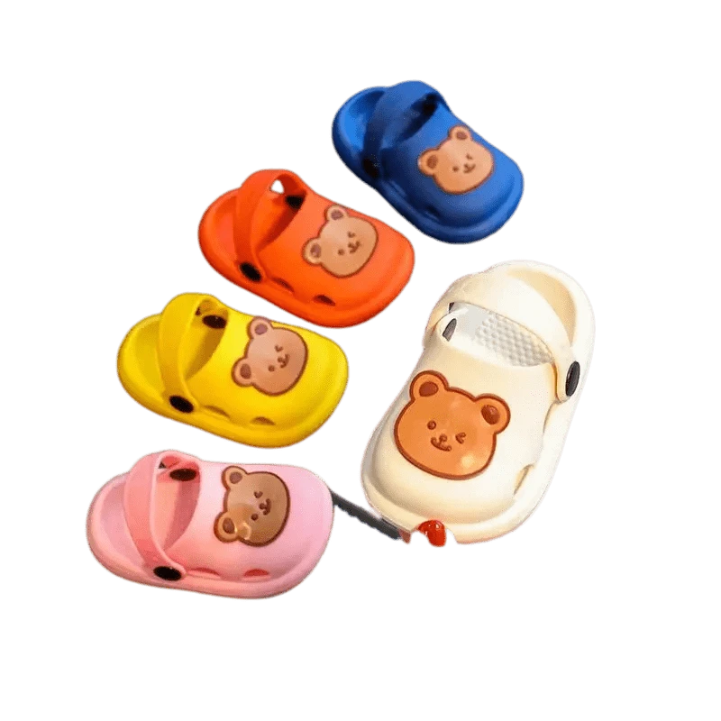 Dessa barnvänliga tofflor kombinerar söt design med praktisk funktion. Den halkfria sulan ger trygghet när barnet springer runt, både inomhus och utomhus, medan slip-on-modellen gör dem enkla att ta på själv.