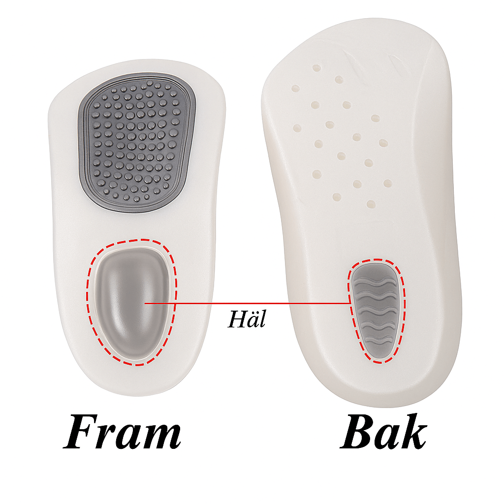 - Självhäftande baksida – fästs enkelt i skon