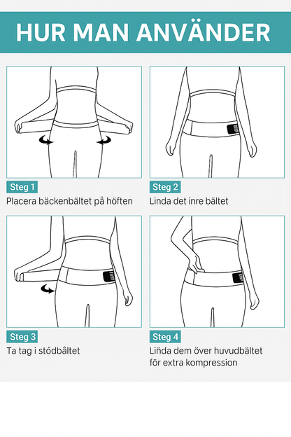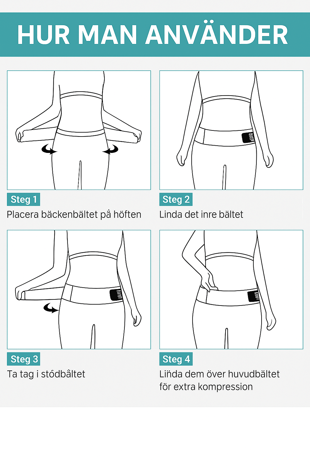 Detta justerbara höftbälte stabiliserar bäckenet och ländryggen, vilket ger avlastning vid vardagliga rörelser och fysisk aktivitet. Det tunna, diskreta materialet gör att bältet kan bäras under kläderna hela dagen – utan att begränsa rörelsefriheten.