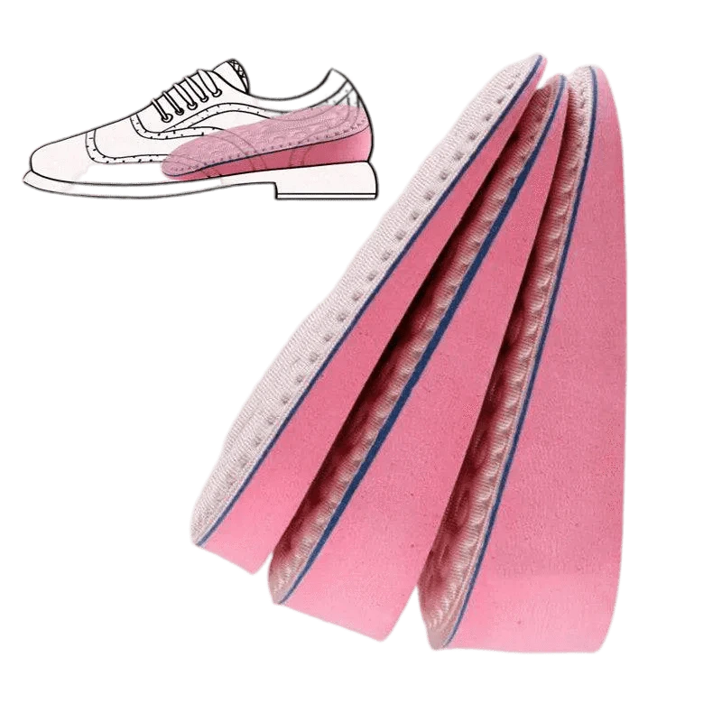 Dessa höjdökningsdynor i mjukt minnesskum och EVA ger dig en osynlig höjning av hälen samtidigt som de minskar trycket på fötterna. Med halkfri undersida och självhäftande funktion hålls de på plats hela dagen. Passar i alla skotyper – perfekt för vardagsbruk och speciella tillfällen.