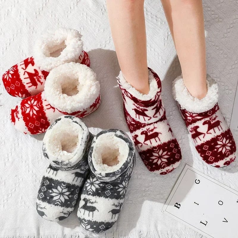 Mysiga tofflor med julmotiv som ger både värme och en festlig känsla i hemmet. Perfekta för kalla golv under vintern, vare sig du vilar på soffan eller går runt i hemmet.