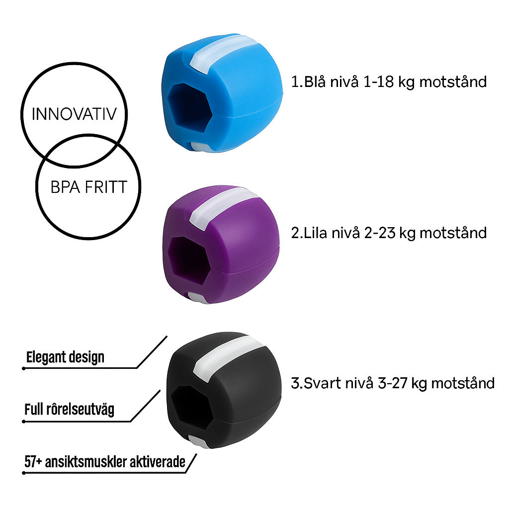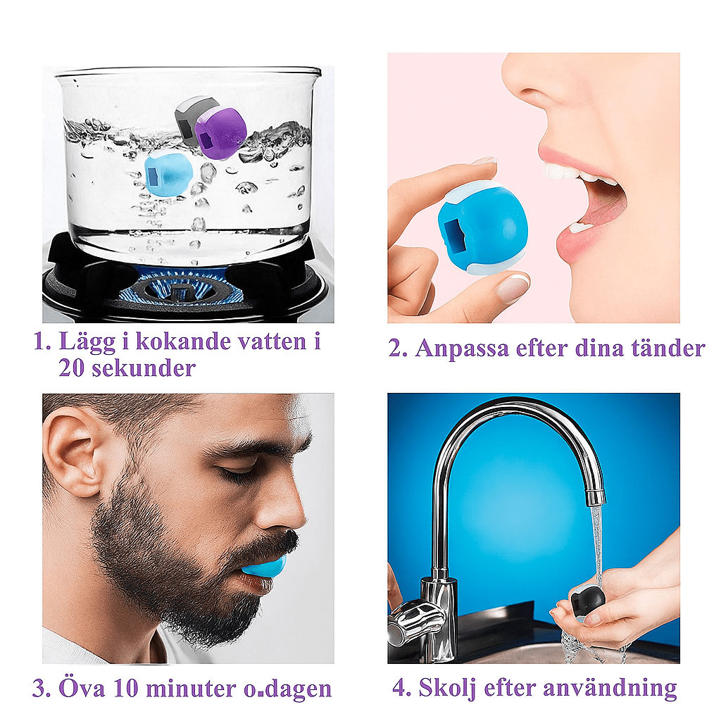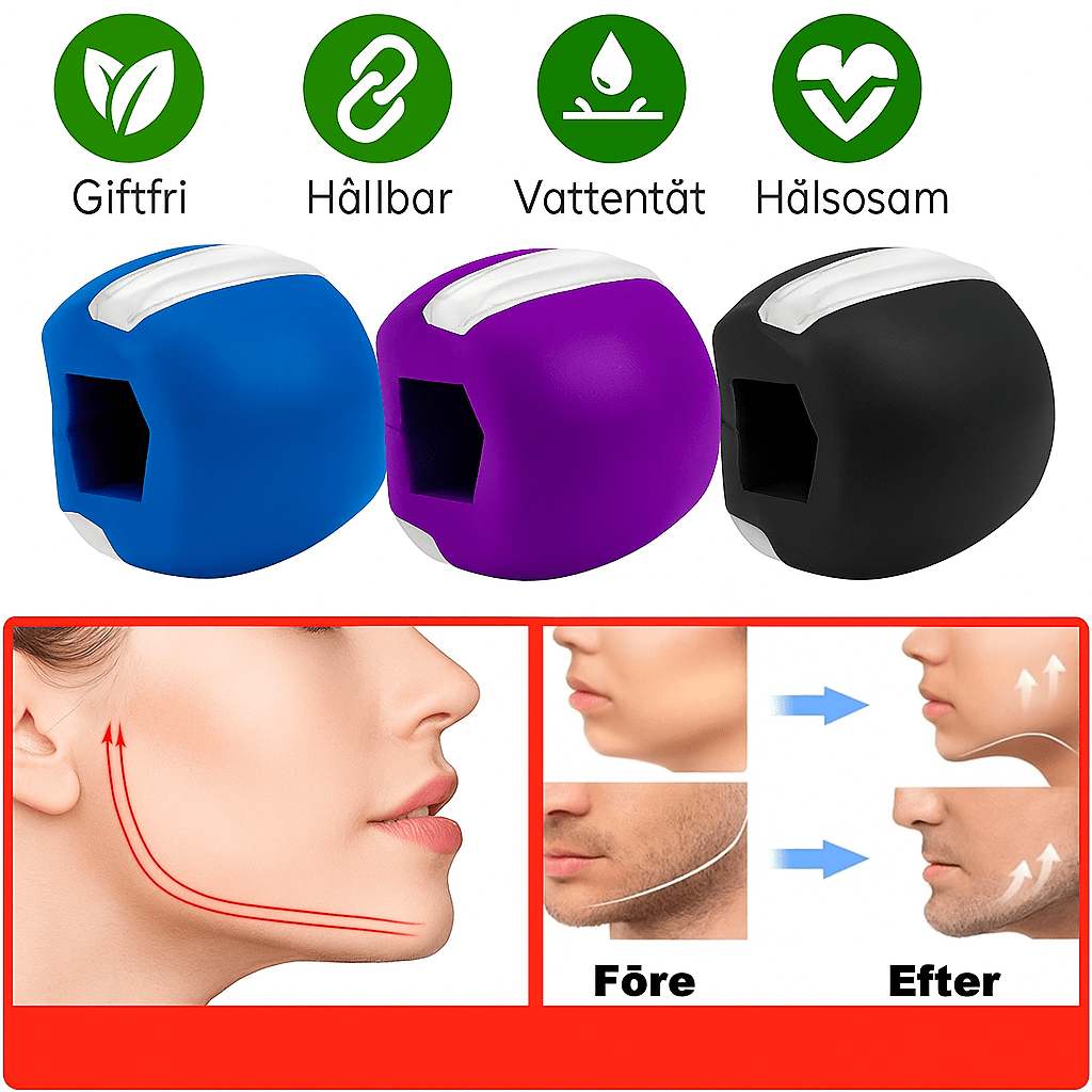 En portabel och säker käktränare som stärker ansiktsmusklerna och definierar käklinjen.