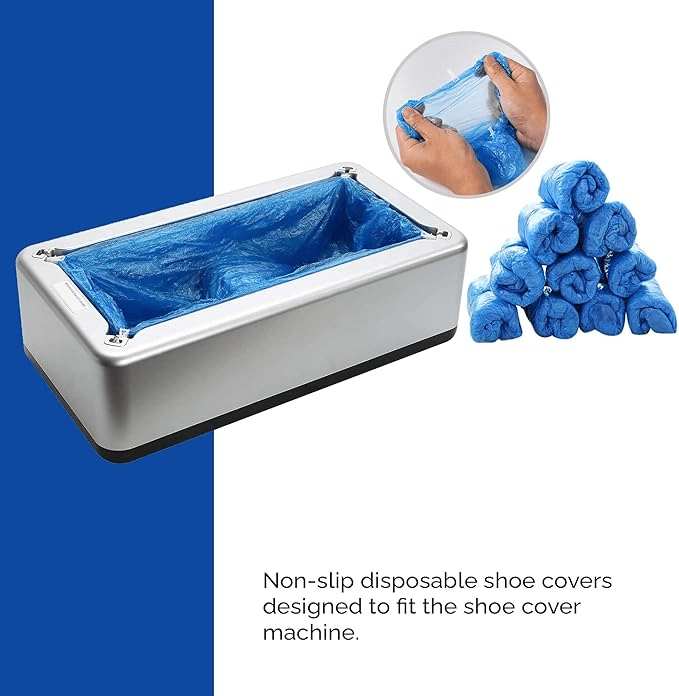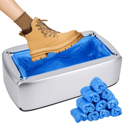 Smart maskin som automatiskt applicerar engångsöverdrag på skorna – perfekt för hemmet, kontoret eller arbetsmiljöer där hygien är viktig. Slipp böja dig eller ta på skydd manuellt – kliv bara på maskinen så sköts resten.