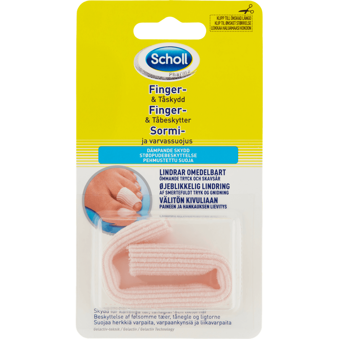 Detta tubformade skydd från Scholl är gjort för att minska tryck och skav på känsliga områden. Det kan användas både på tår och fingrar och klipps enkelt till önskad längd.