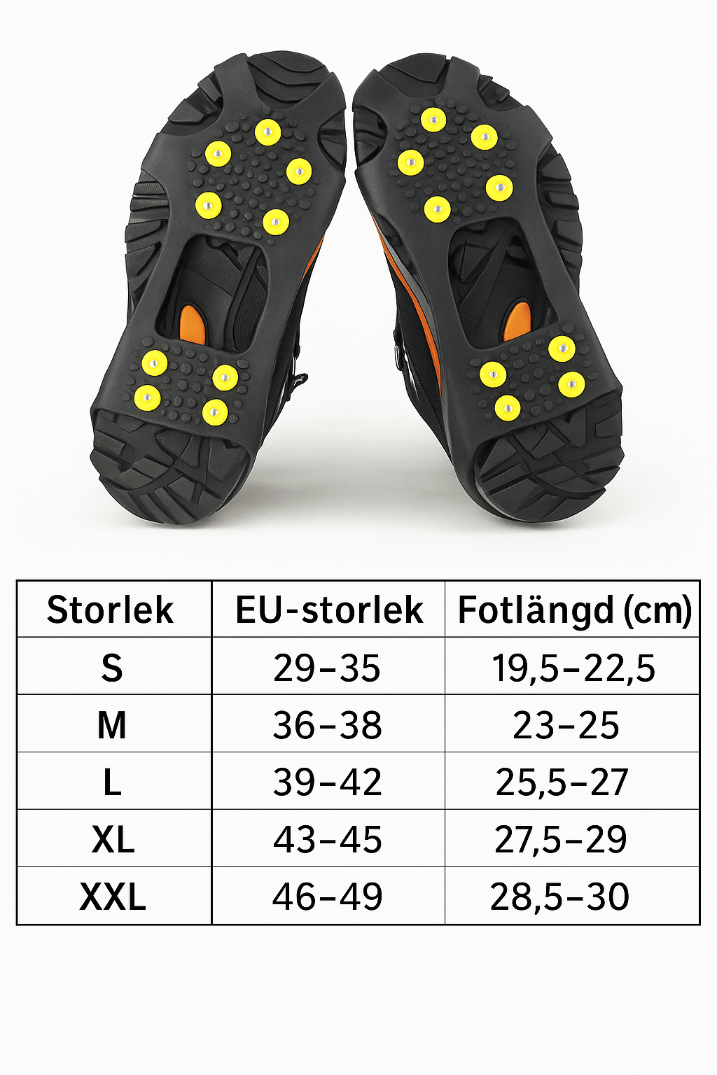 Perfekta för promenader under kalla månader, oavsett om du går i stan, på landsväg eller till jobbet. Metallpiggarna ger trygghet i varje steg.