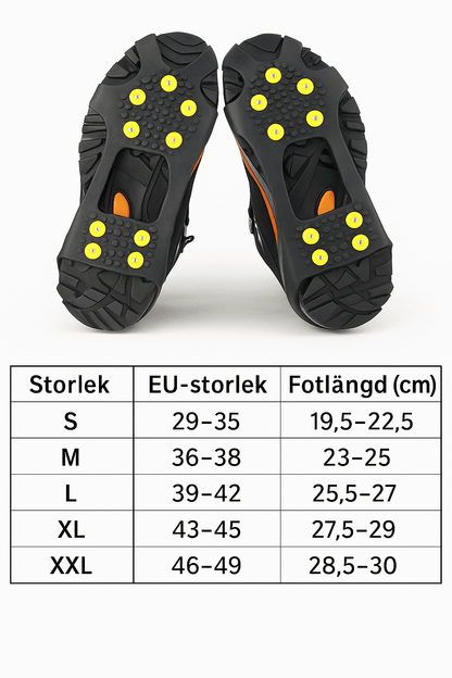 Skydda dig mot halkolyckor i vinter med broddar som ger stabilt grepp på isiga underlag. De elastiska banden gör att de sitter säkert över de flesta skor och är enkla att ta av och på vid behov.