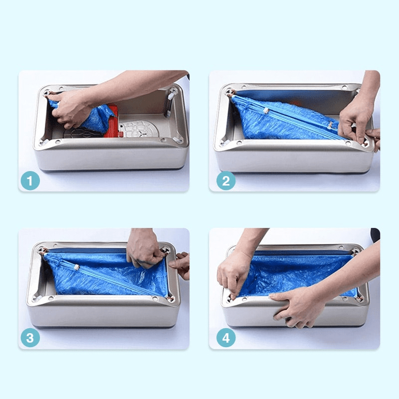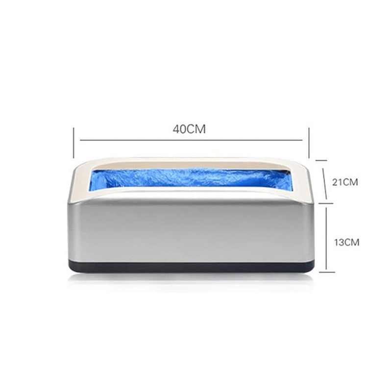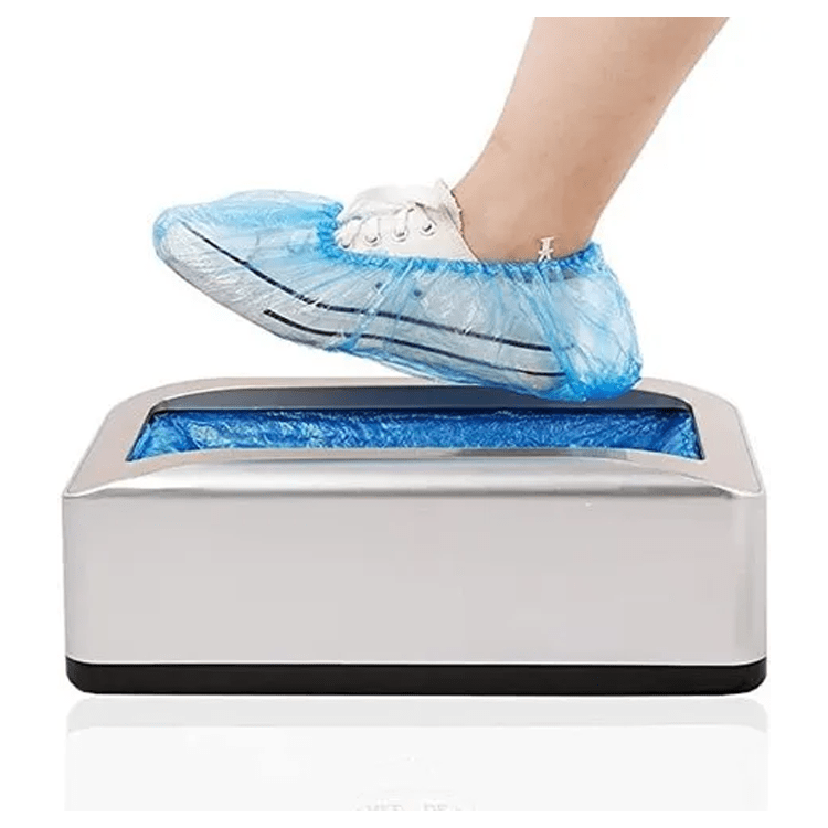 Smart maskin som automatiskt applicerar engångsöverdrag på skorna – perfekt för hemmet, kontoret eller arbetsmiljöer där hygien är viktig. Slipp böja dig eller ta på skydd manuellt – kliv bara på maskinen så sköts resten.
