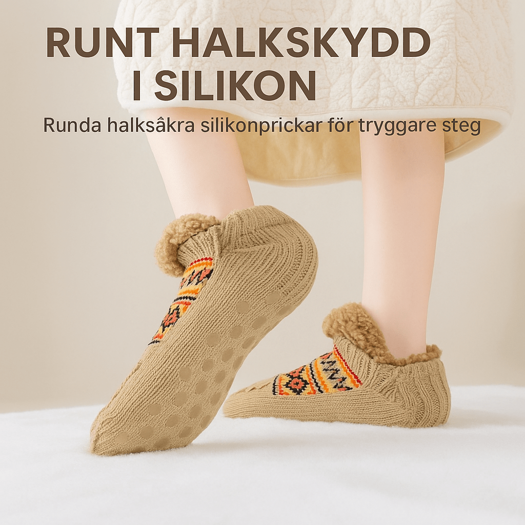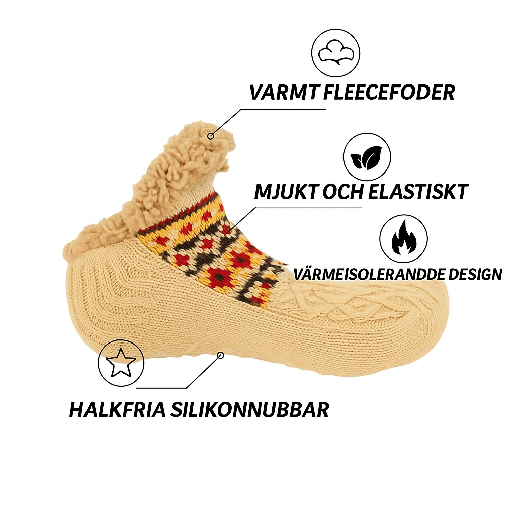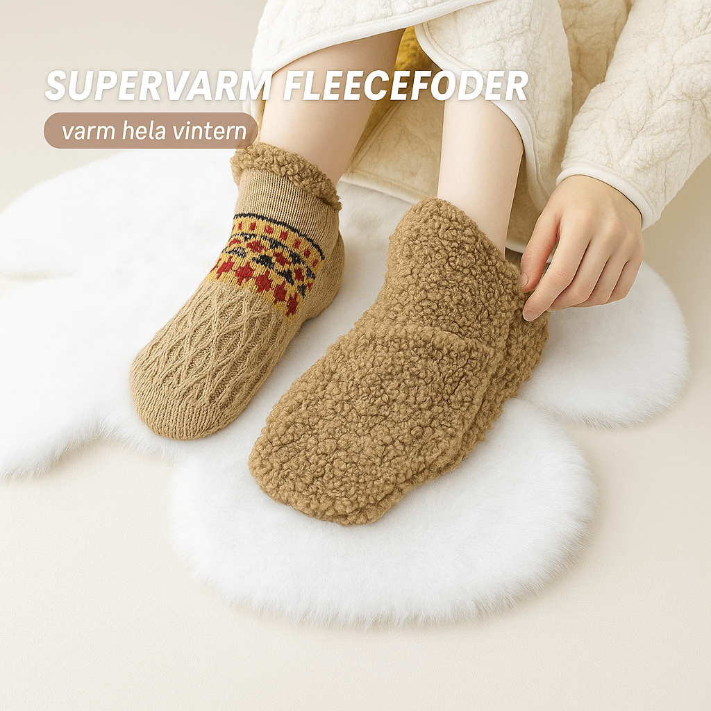 Vinterstrumpor (fleecefodrade) håller fötterna varma och halksäkra inomhus